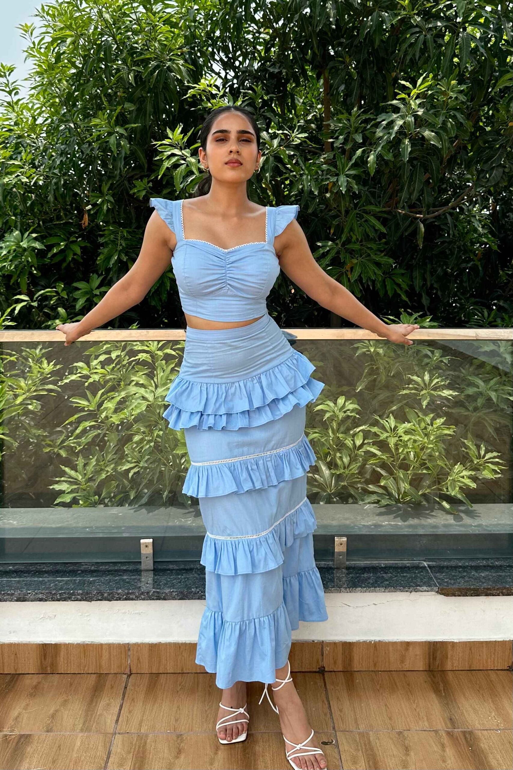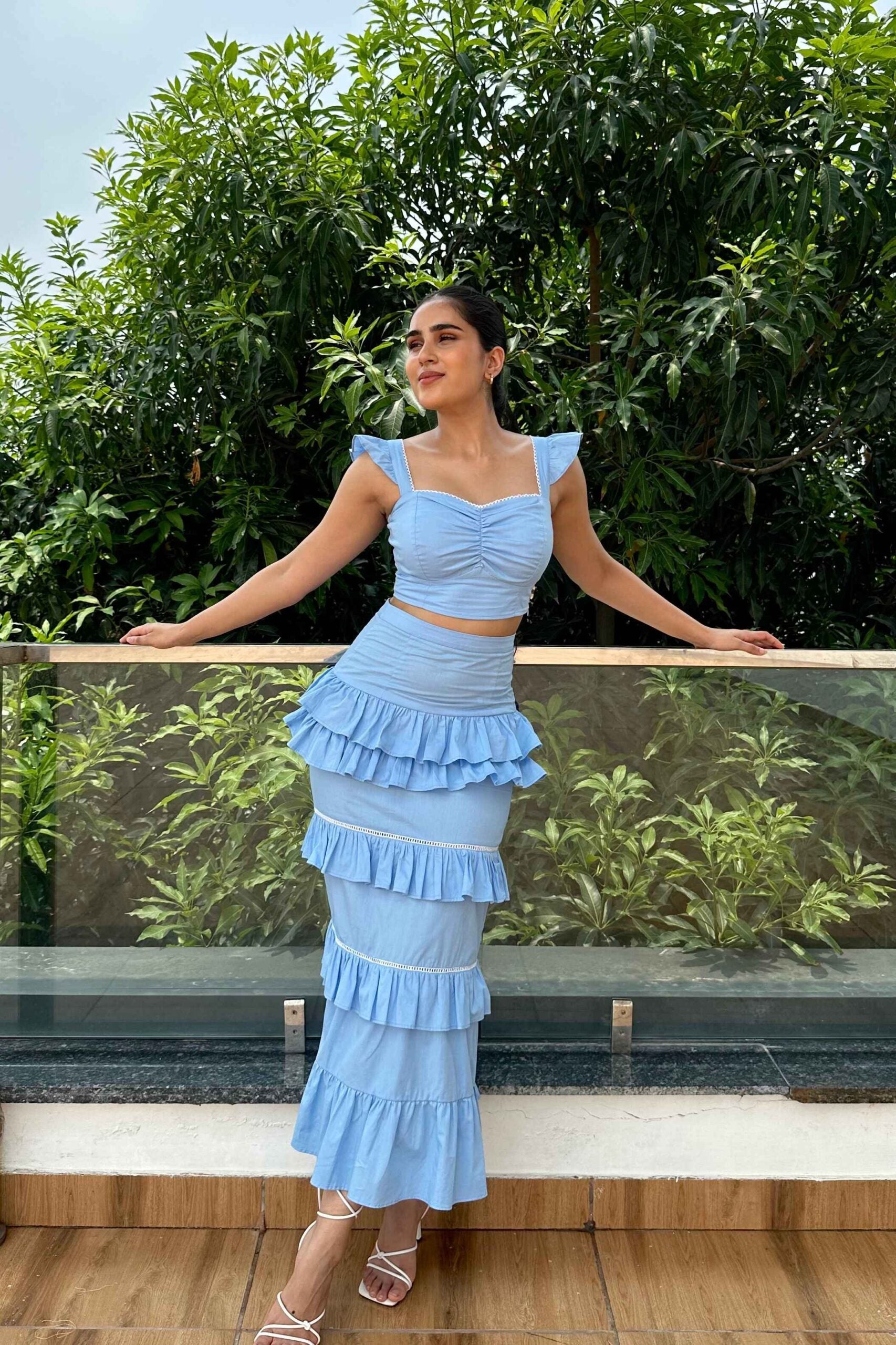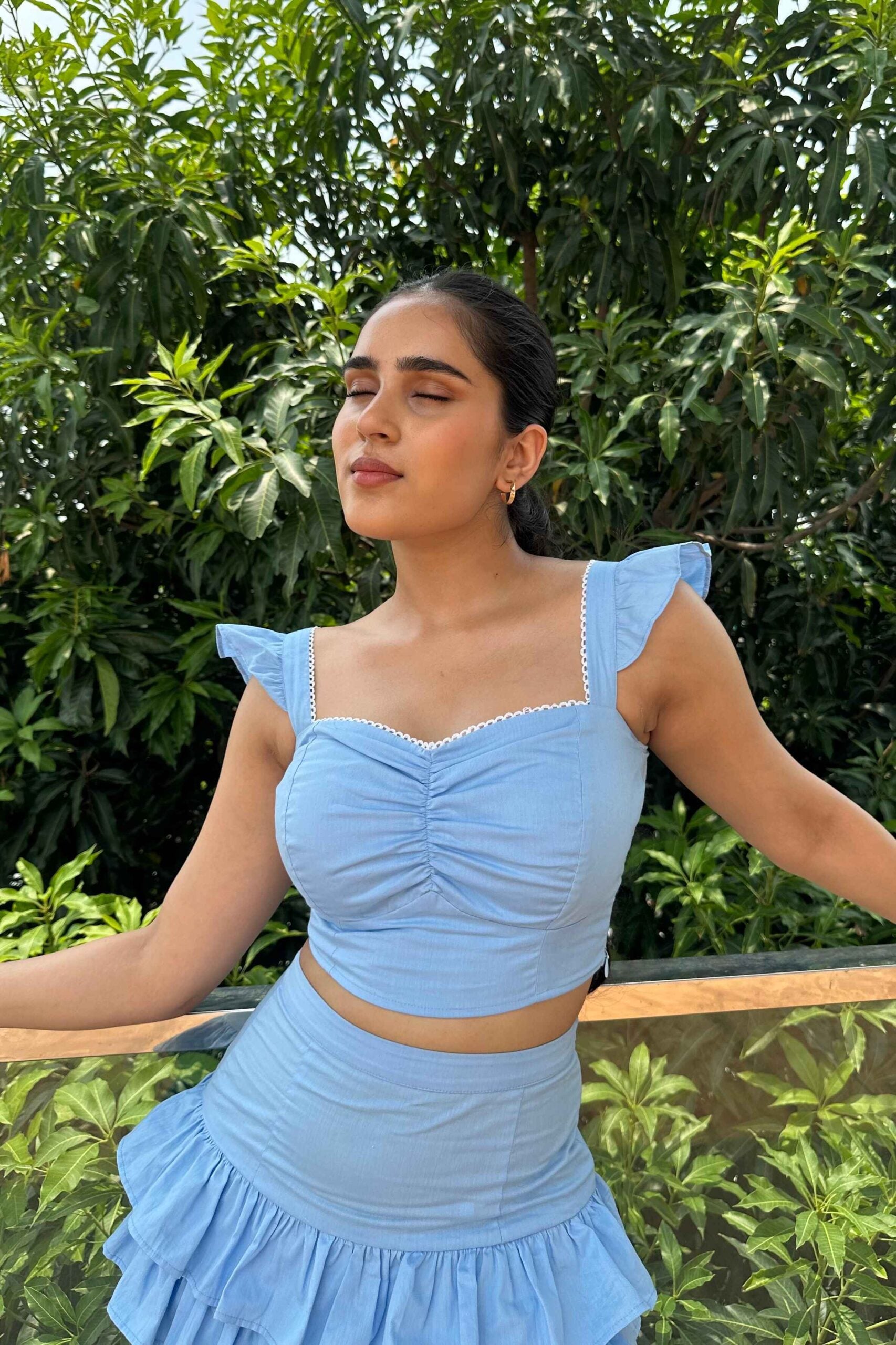 • Handcrafted 100% Premium Cotton Sky blue colour Coord set