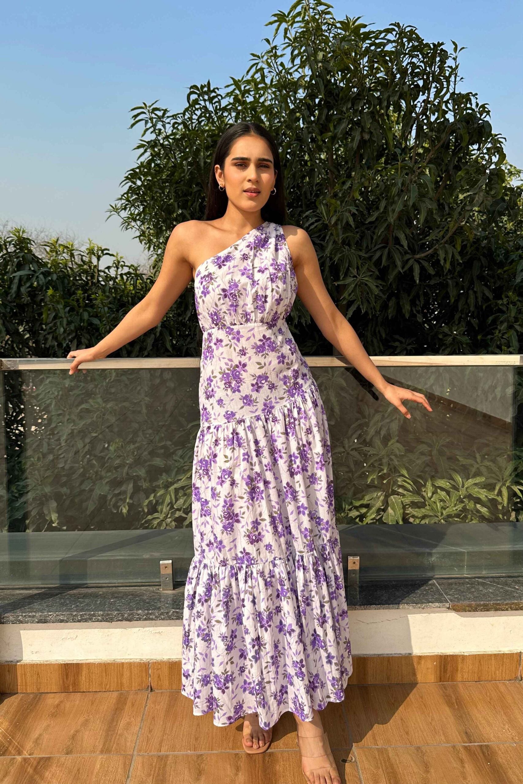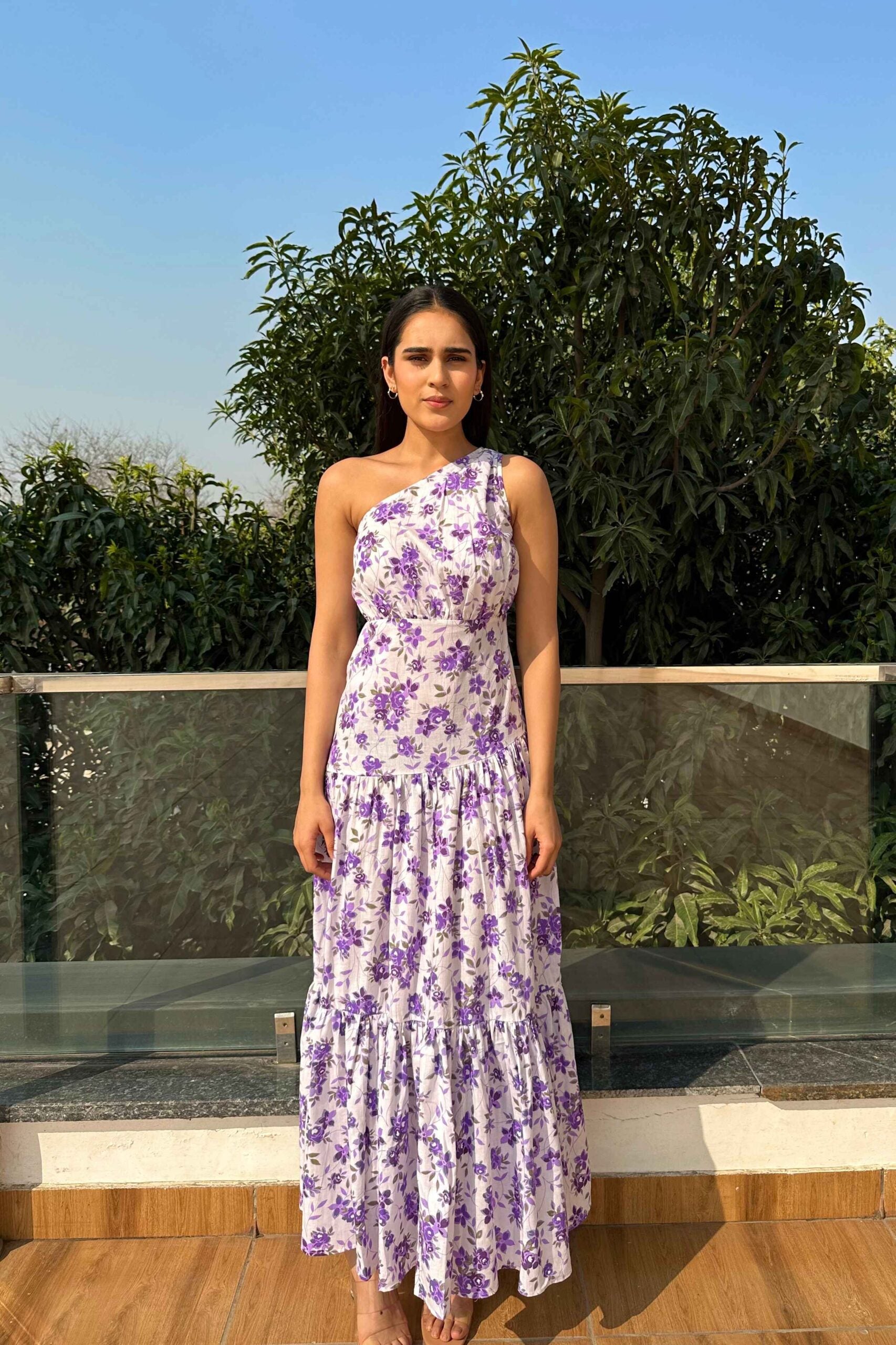 • COTTON Printed One shoulder flared dress