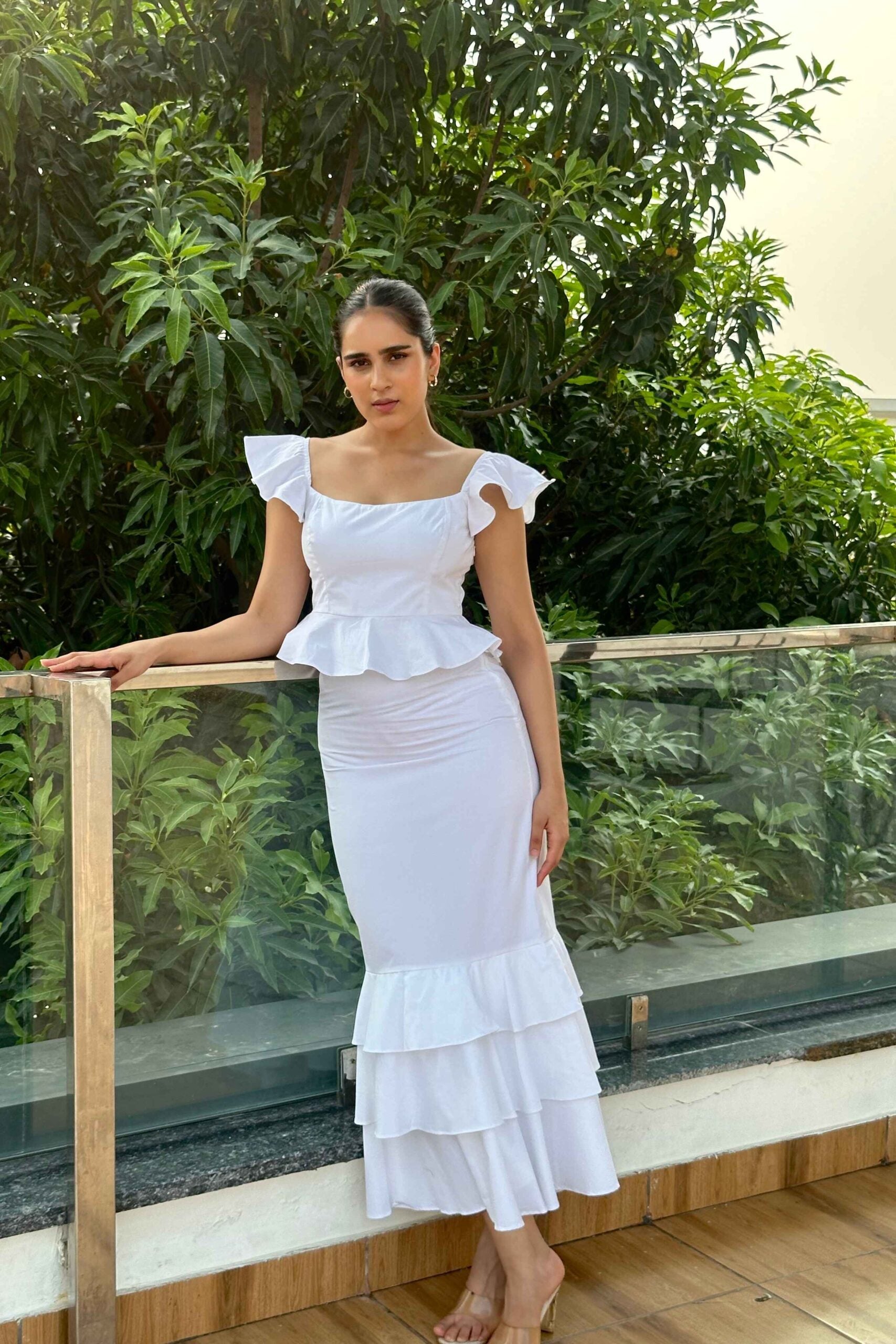Cinderella - Super Elegant Coord set in White Cotton