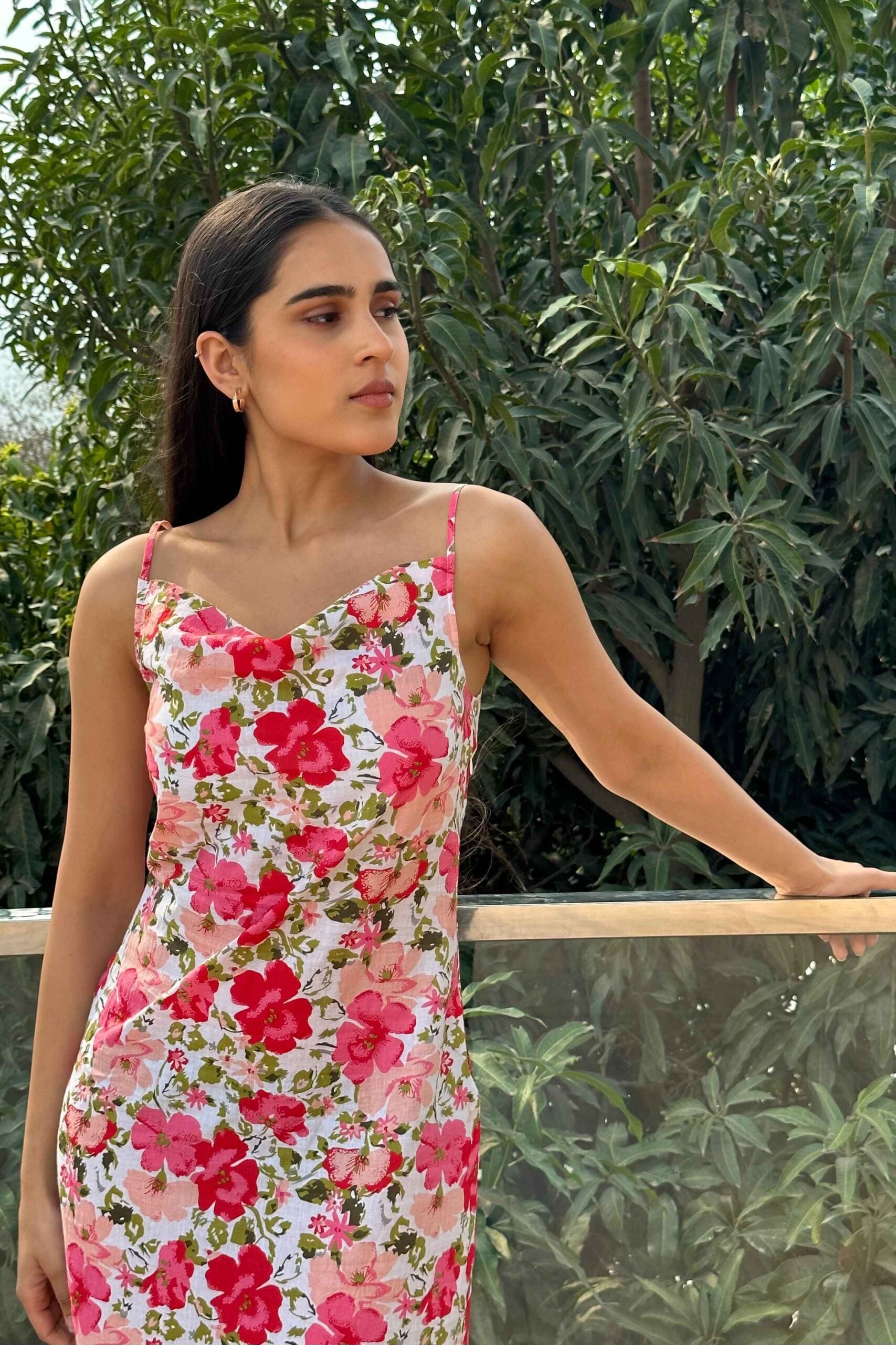 • Cotton Print Cowl Neck Slip Dress