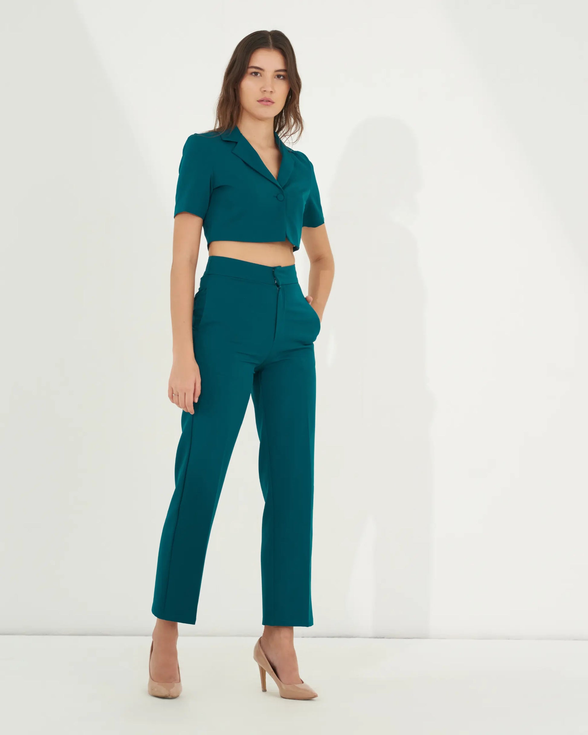 EMPOWERED- Teal green short blazer with straight pants (Set)