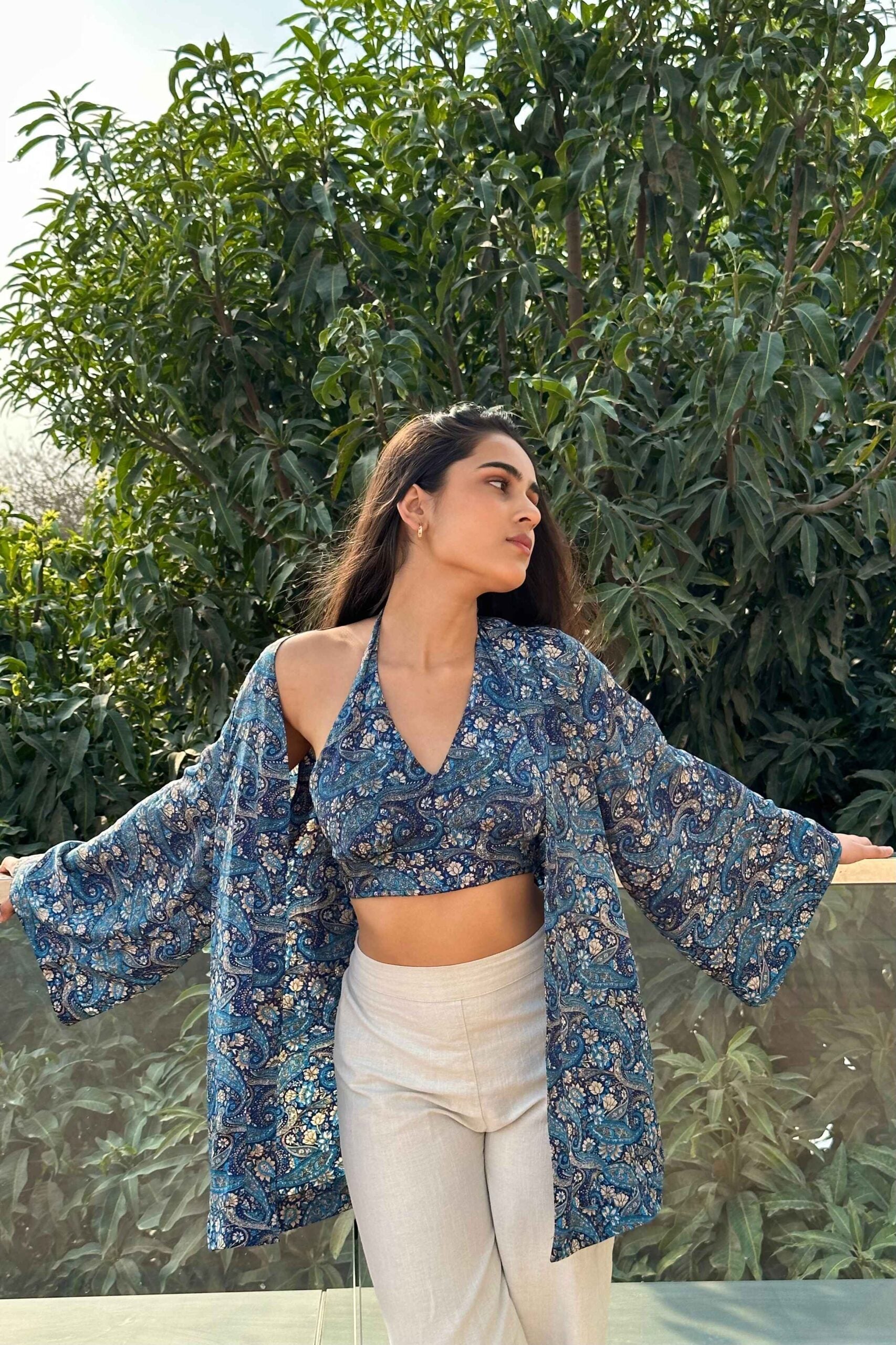• Halter neck Blue print top