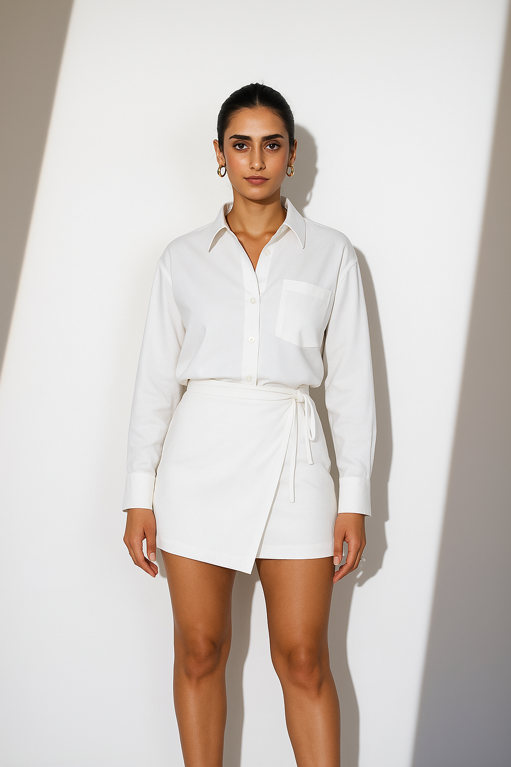 Effortlessly chic and timelessly elegant, this white coord set is a modern wardrobe essential. Crafted from premium cotton fabric, it exudes sophistication with its clean lines and minimal aesthetic.
