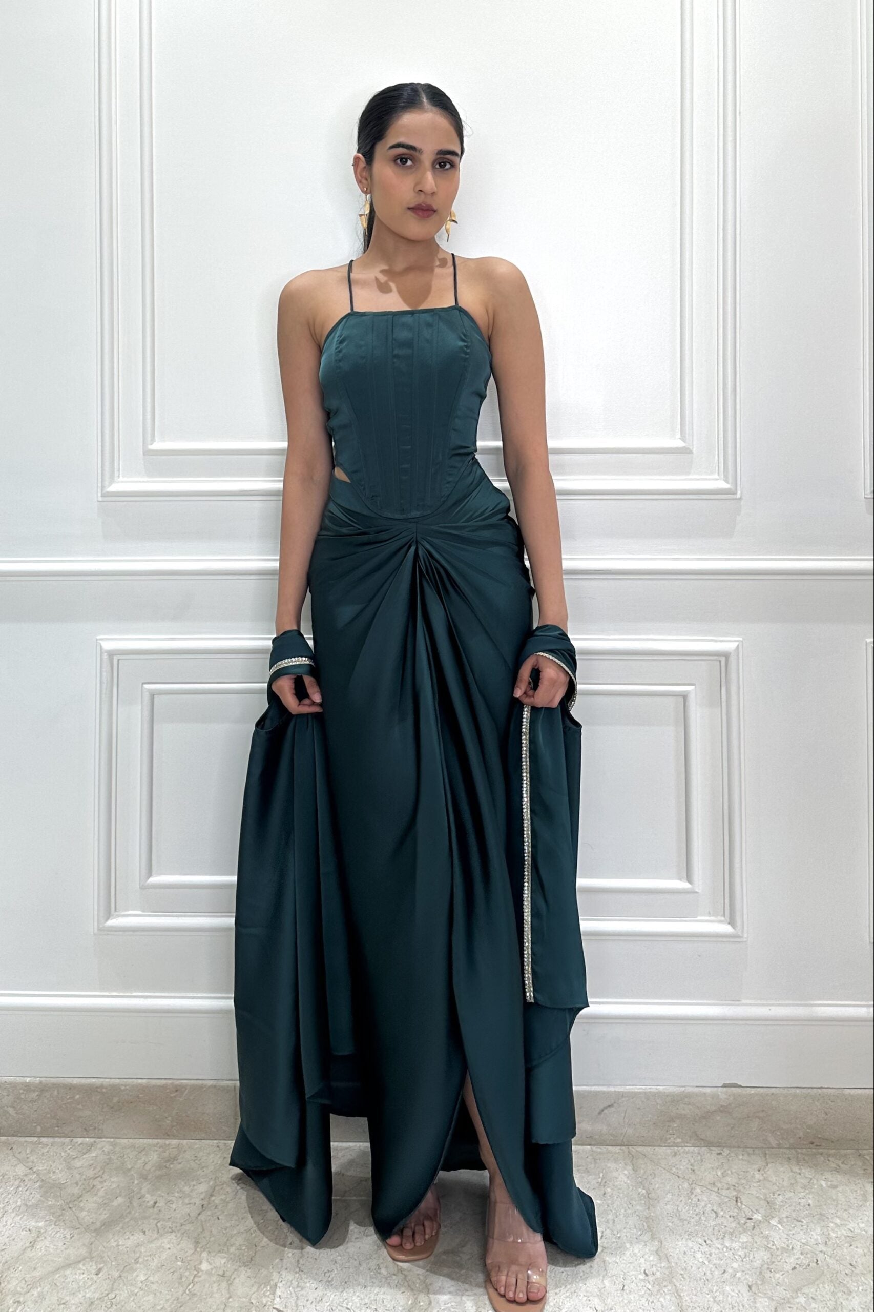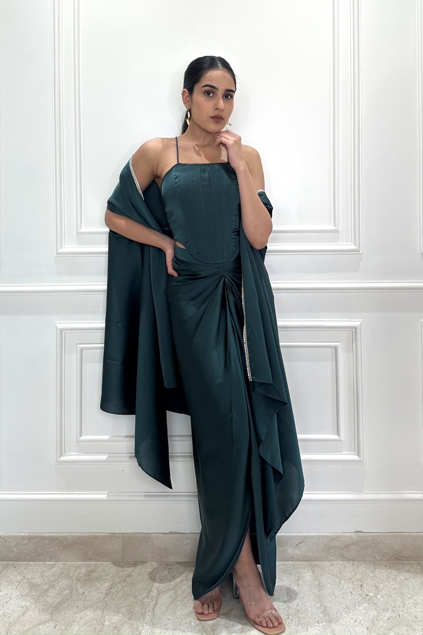 SHOW STOPPER – Corset top, draped skirt and a cape
