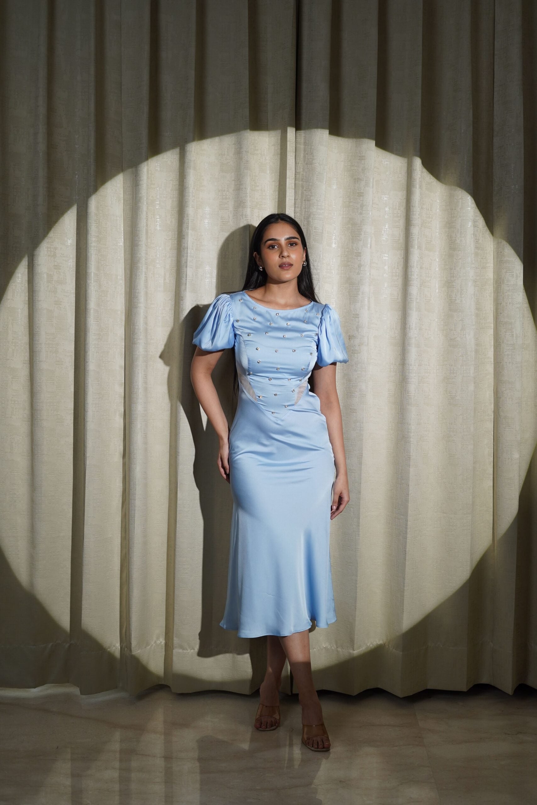 TIMELESS CROWN - HANDCRAFTED BLUE SATIN DRESS