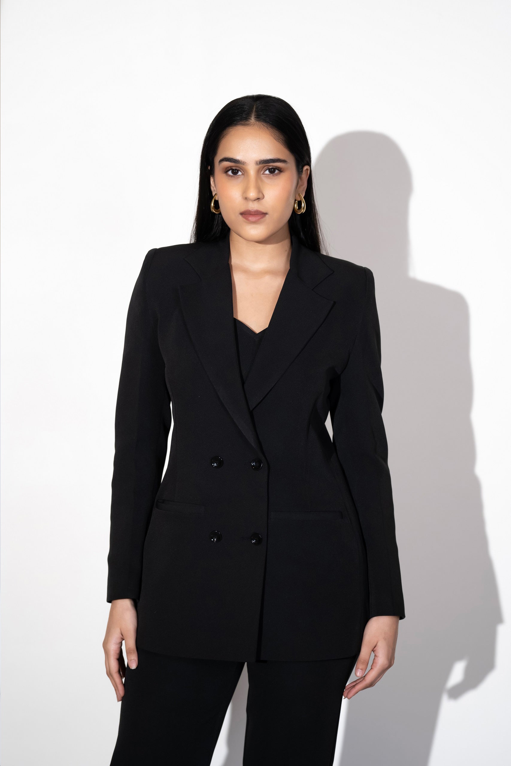 TIMELESS DOUBLE BREASTED BLACK PANTSUIT